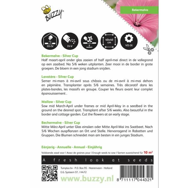 Zaden bekermalva of grootbloemige Lavatera – Lavatera trimestris Silver Cup.