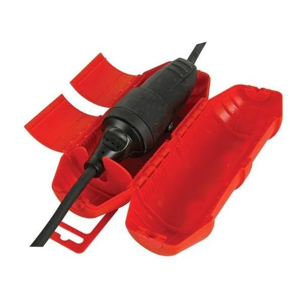 Deze houder beschermt stekkerverbindingen tegen vochtigheid, regen,… en is ook veilig voor kinderen.