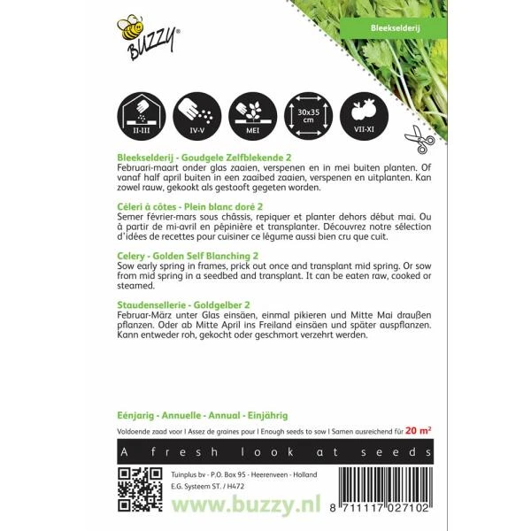 Bleekselder Goudgele Zelfblekende is een zeer vroege cultivar met gladde, lange en vlezige stelen zonder draad. Deze variëteit bleekt goed zonder dat je ze hoeft af te schermen van het zonlicht.