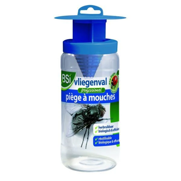 Heel doeltreffende, unieke val voor de meeste soorten vliegen. De vliegenval is herbruikbaar en vangt tot 20.000 vliegen per keer. Bestrijdt de vliegen buitenshuis én vermindert daardoor ook sterk het aantal vliegen dat binnenkomt.