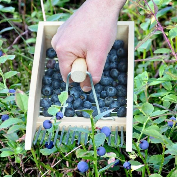 Traditionele bessenplukker voor het snel en eenvoudig oogsten van verschillende bessensoorten. Je plukt vele bessen tegelijk door de tanden achter de bessen te haken en de plukker naar voren te trekken.