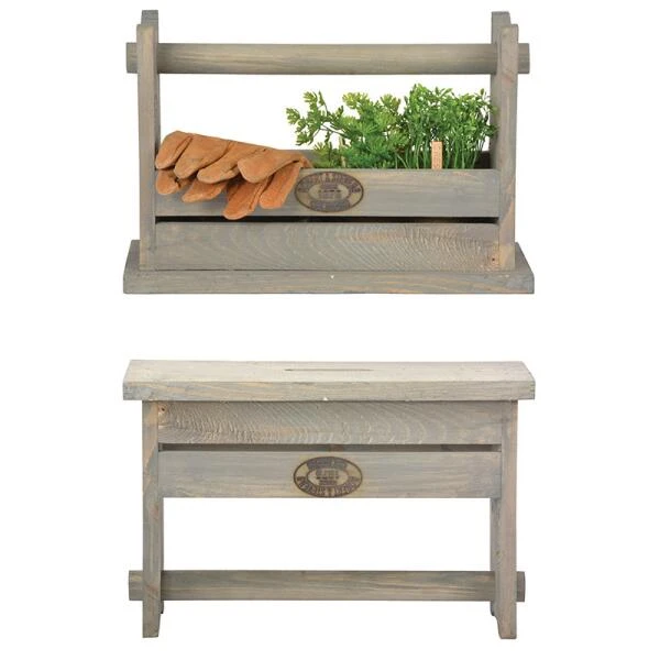 Rustieke gereedschapskist die ook als bankje kan worden gebruikt en dat zowel binnen als buiten.