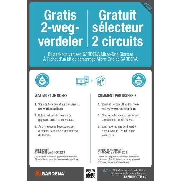 De sproeiafstand kan worden ingesteld met behulp van de regelventielen. Door de Quick & Easy-koppelingstechnologie kan je de MDS-onderdelen op elk moment opnieuw indelen, zonder ze te beschadigen.