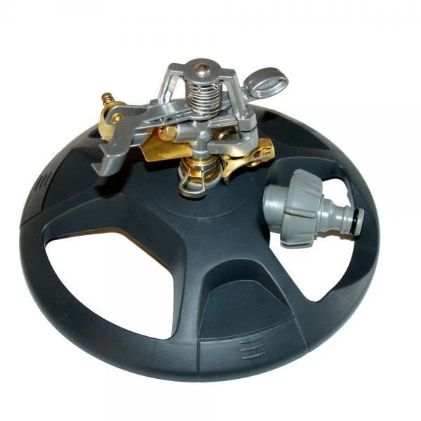 Deze duurzame sproeier heeft de mogelijkheid om cirkelvormig te sproeien. De sproeier kan ook gemakkelijk worden ingesteld om slechts een bepaalde hoek van een perk of een gazon te besproeien.