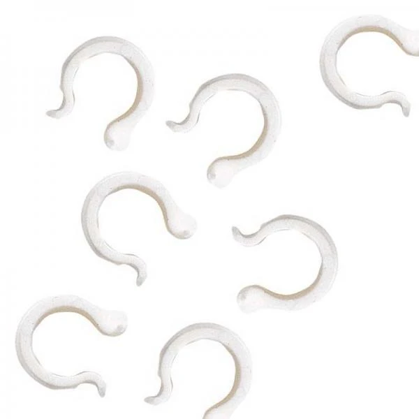 Stevige kunststof klemmen voor het vastzetten van folie, insectengaas, weringsnet of zeil aan buisvormige structuren.