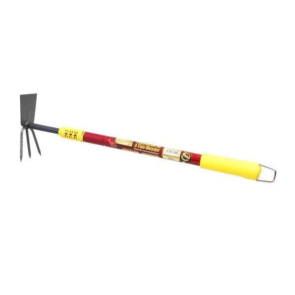 Met deze telescopische onkruidwieder kan je de grond bewerken zowel van op de grond als rechtopstaand. Aan de éne zijde heeft deze tool een hak en aan de andere zijde een handige hark met drie stevige tanden. De steel van deze duoha(r)k is uit te schuiven van ca. 62 tot 94 cm. Met een handig kliksysteem los je de steel en zet je hem weer vast op de gewenste lengte. De antislip-handgreep zorgt voor een goede grip tijdens het werken. De kapper is ook voorzien van een ophanghaak aan het uiteinde van de steel. Zo kan je dit handige gereedschap netjes opbergen in jouw tuinhuis.