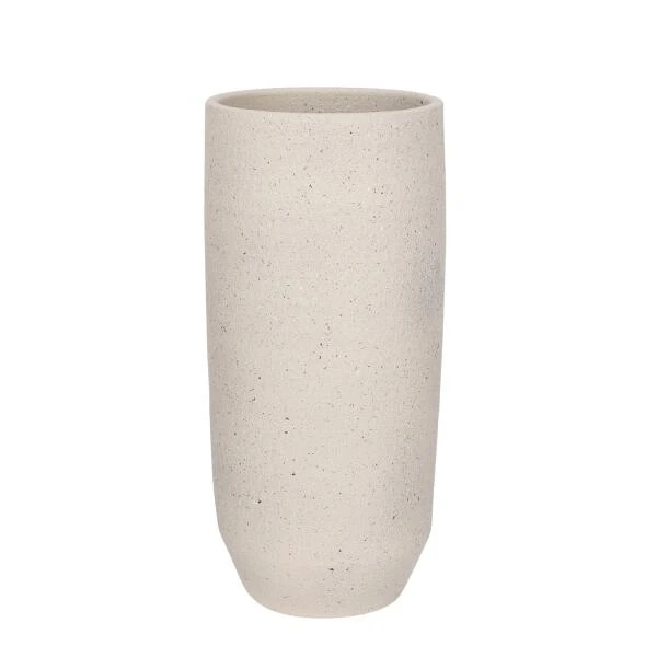Vaas Quinn is een hoge vaas in een off white uitvoering met subtiele zwarte spikkels. Een niet alledaaagse uitvoering die past bij een hedendaags modern of Scandinavisch interieur. Zijn eenvoudige design straalt elegantie en klasse uit.