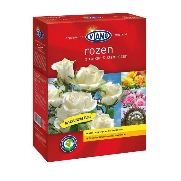 Organische minerale meststof voor rozen, rozenstruiken, klim- en stamrozen.