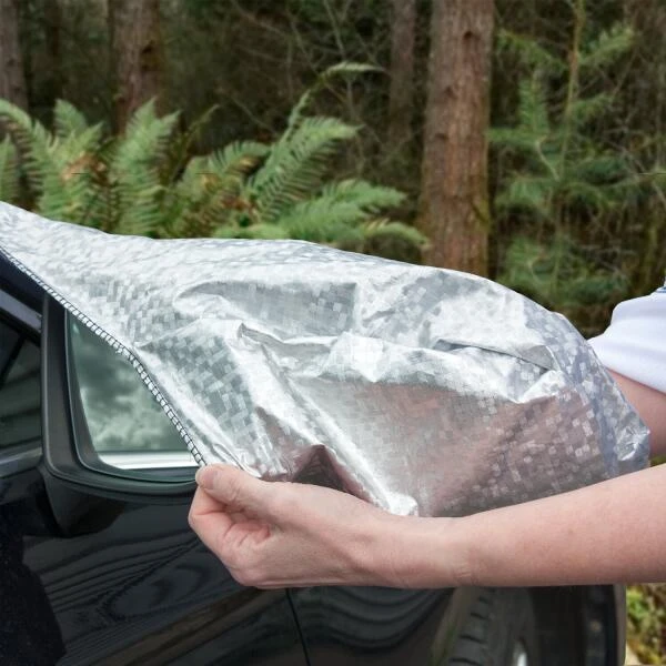 Deze DELUXE voorruit cover biedt zowel in de winter als in de zomer bescherming voor jouw wagen. De cover is voorzien van 5 sterke magneten en spiegelbescherming.