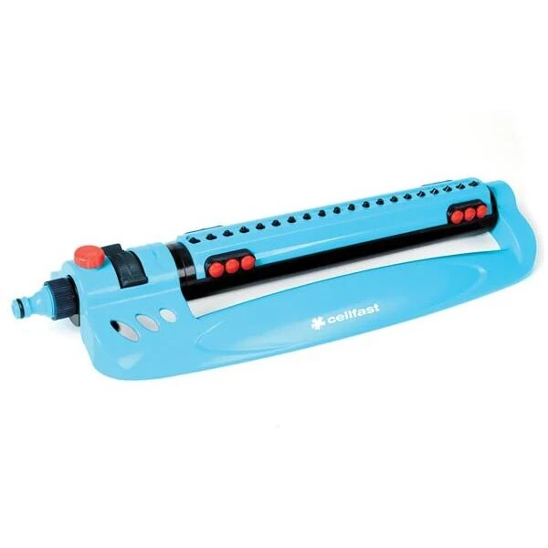 Handige zwenksproeier, gemaakt uit hoogwaardig kunststof. Een zwenksproei is het middel voor het bewateren van pas gezaaide gazons, gazons of voor percelen in de groententuin.